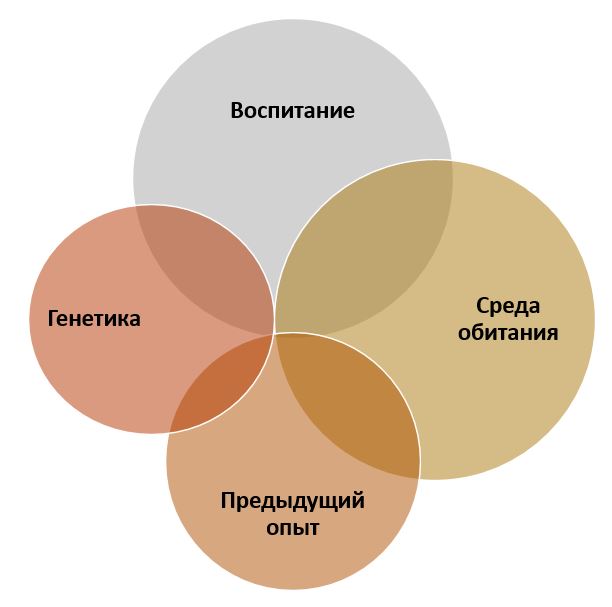 • средой развития (школой, ВУЗом, сообществами и т.д.) и проживания (да-да, даже район и его архитектура накладывают отпечаток на поведение человека);