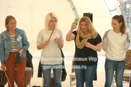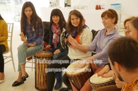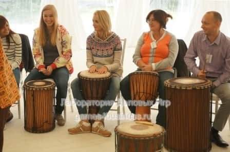 В итоге выбор пал на барабанный тренинг — расширенный формат барабанного мастер-класса, в котором акцент делается на взаимодействие участников. По сути, это командообразующий тренинг, проводимый с помощью музыкальных инструментов. Участники работают в парах и командах, составы которых меняются. В тренинг встроена личностная типология, помогающая осознать участникам свои личностные особенности и качество взаимодействия с представителями других типов.