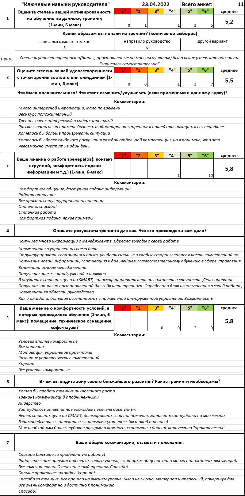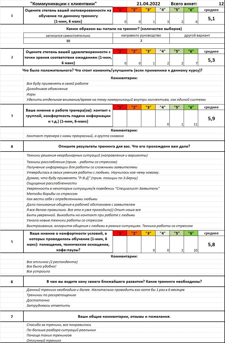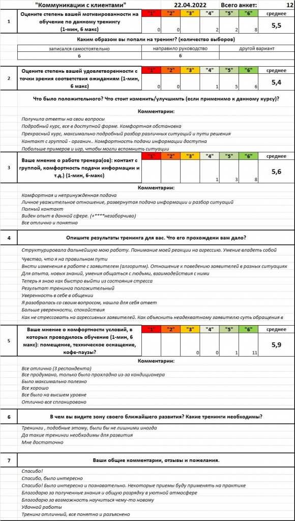 Участницы данных тренингов в Магадане были вполне довольны результатами. Что можно увидеть в анкетах обратной связи.