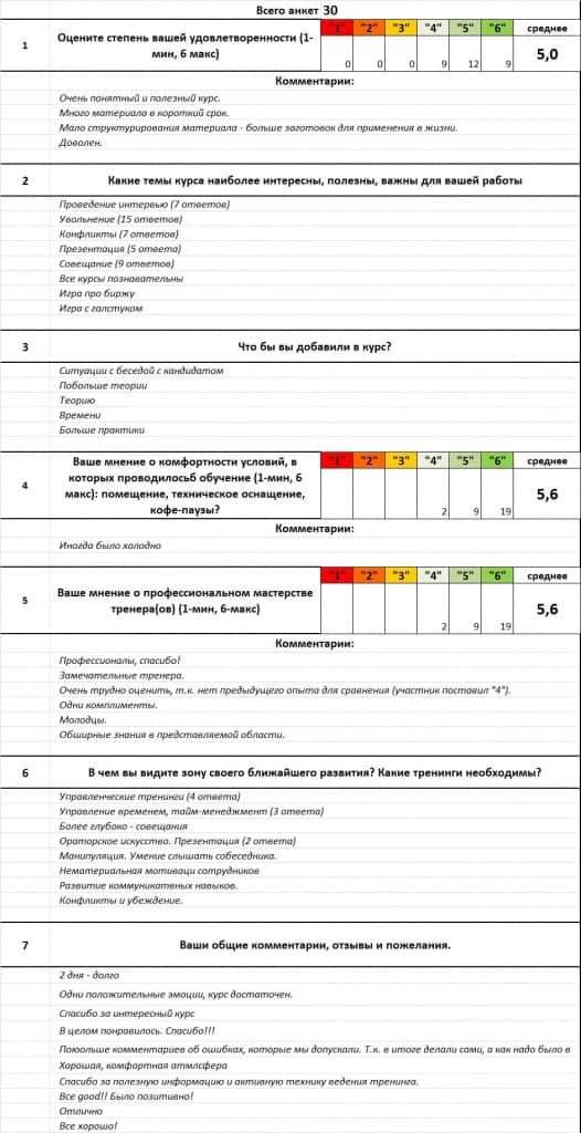На основании анкет обратной связи мы имеем отзывы и комментарии от участников.