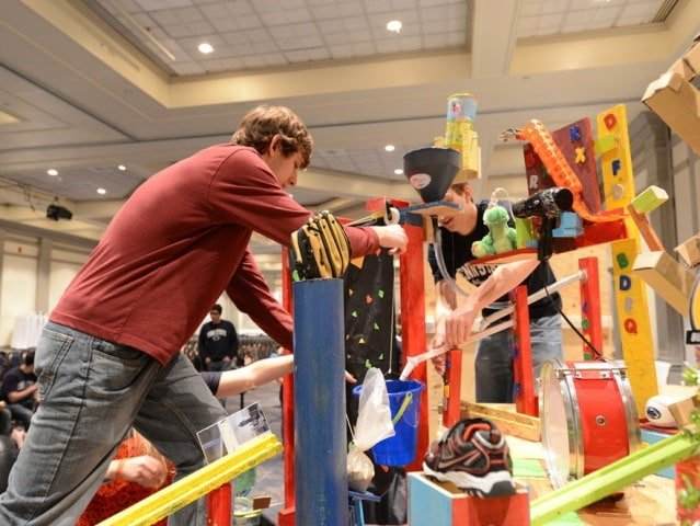 В некоторых случаях это проводится как соревнование — каждая команда должна построить свою «машину Голдберга», состоящую из нескольких принципов. На этапе «приемки» мы начисляем баллы и выявляем победителей.