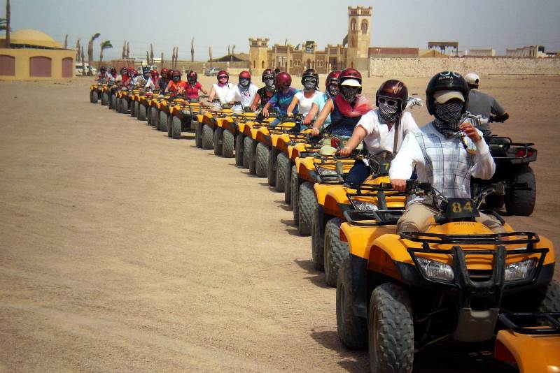 - поехать на квадроциклах на мотосафари через пустыню в «настоящую бедуинскую деревню»;