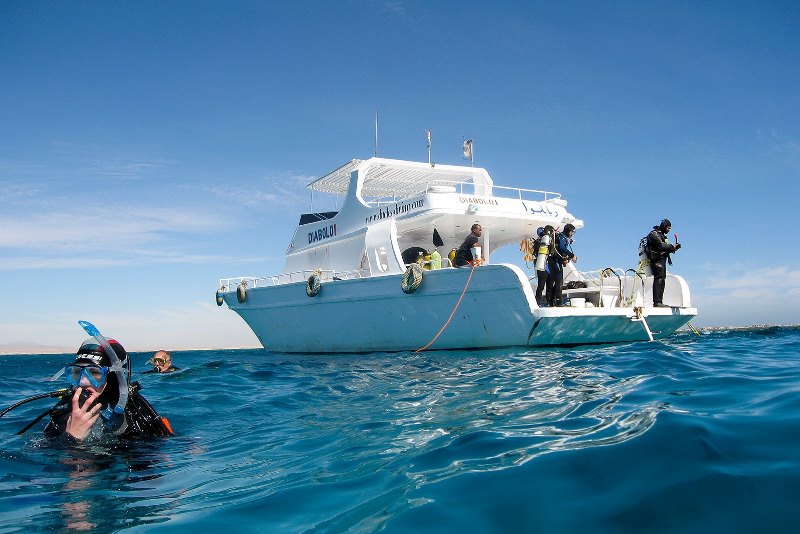 - обязательно — выезд на катере в море за рыбками — ведь Хургада является «меккой» дайвинга и снорклинга (кто-то может даже сделать свое первое погружение или успеть обучиться дайвингу за 3 дня — это мы тоже организуем);