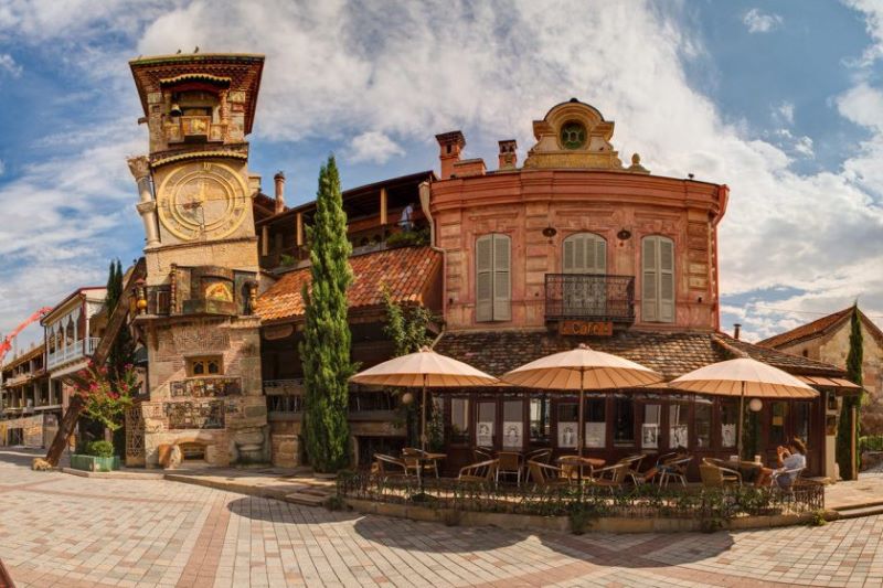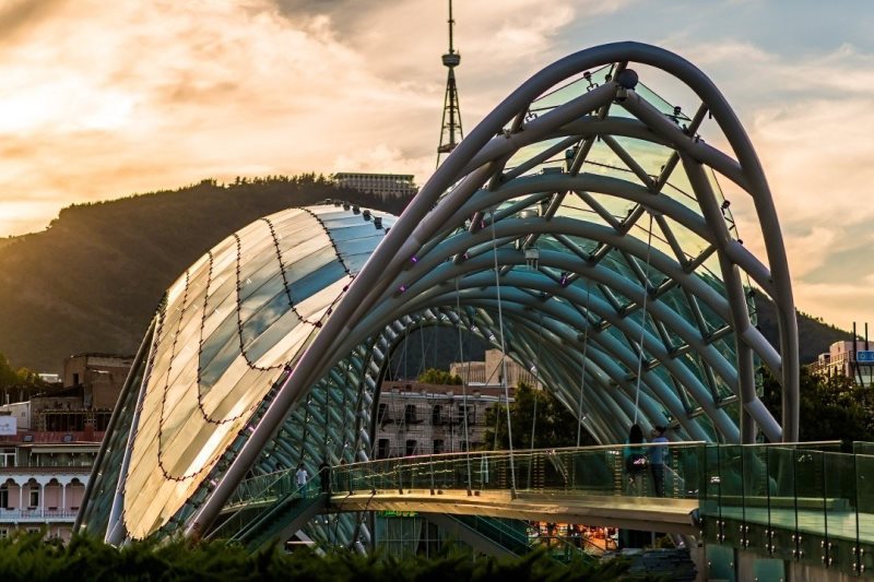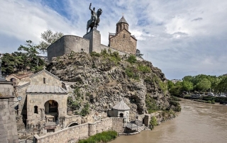 - Тбилиси с его знаменитым мостом Мира, площадью Вахтанга Горгасали (с лежащими рядом банями и ботаническим садом с каньоном), театром марионеток Резо Габриадзе, крепостью Нарикала и храмом Метехи (которые соединяет канатная дорога);